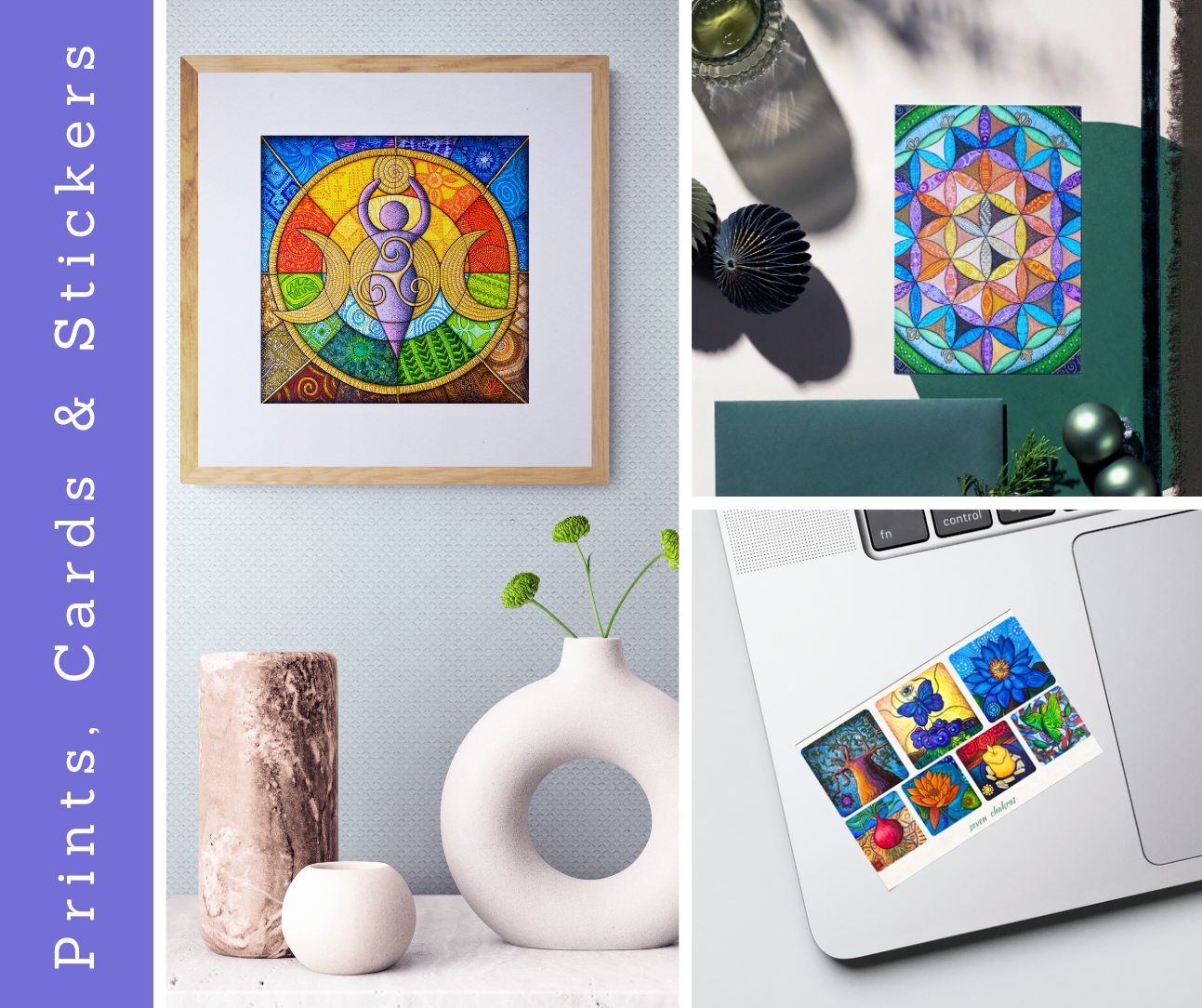 Gifts of Intention: This collection features mini prints and functional art made from my original "slow art" drawings—designed to inspire, uplift, and energize. For Art Prints that are available at various sizes on watercolor paper, canvas, wood, metal, and acrylic, please visit here.