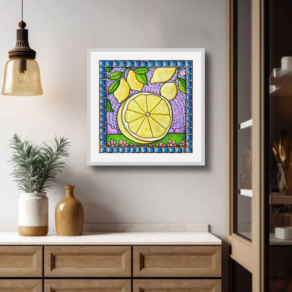 This artwork is part of my Italian Chakra Series, created after moving to Italy as a way to reconnect, recalibrate, and ground myself in the energy of this landscape. Inspired by the fruits and vegetables that define Mediterranean life — and the slow cooking traditions that protect them — each piece pairs natural symbolism with the handcrafted aesthetics Italy is known for: stained glass, mosaics, wood carving, and rich folk patterns.